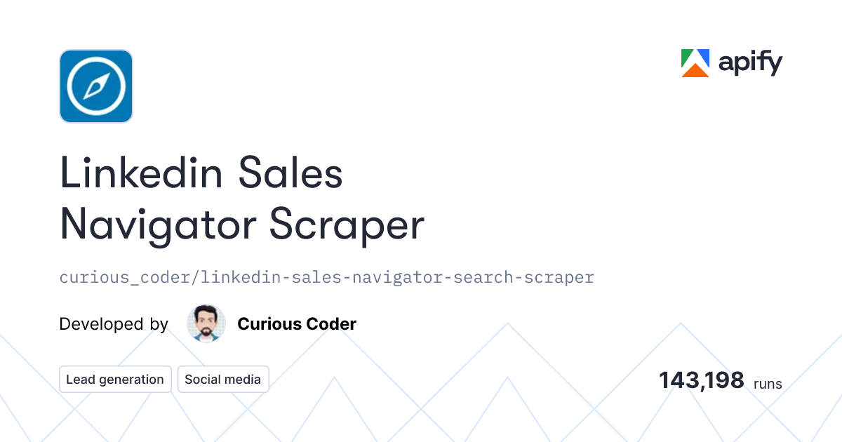Developed by curious_coder, the Linkedin Sales Navigator Scraper is a specialized Apify actor designed to efficiently scrape data from LinkedIn Sales Navigator. This scraper excels at extracting key information from: